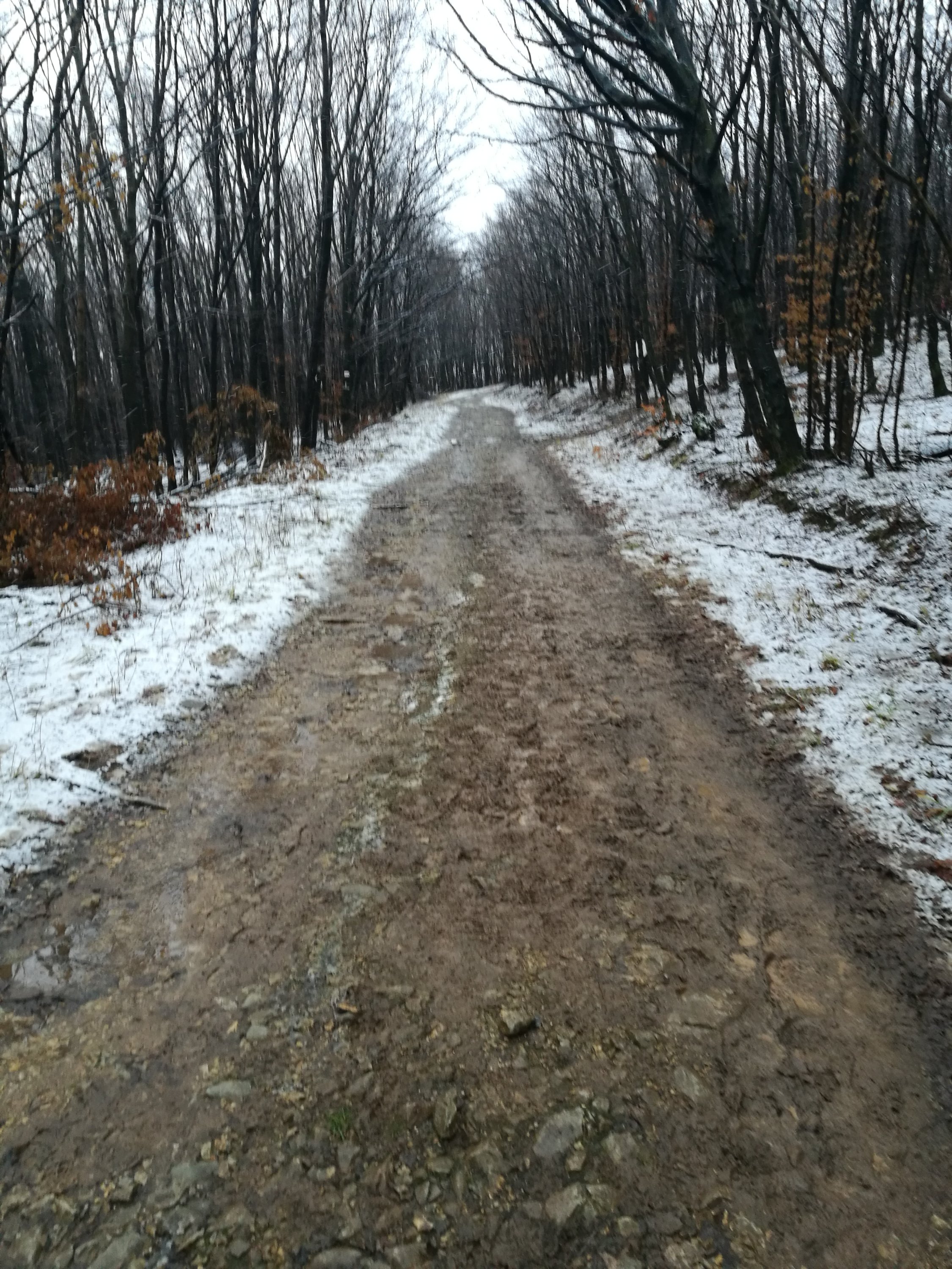 Az első szakasz 8 km-en keresztül emelkedett. Kb. 2-3 olyan rész volt, ahol hosszabban kellett meredeken kapaszkodni. A többi helyen jórészt futható emelkedés volt. Már ahol tudtam a sárban vagy az út mellett az avarban haladni.