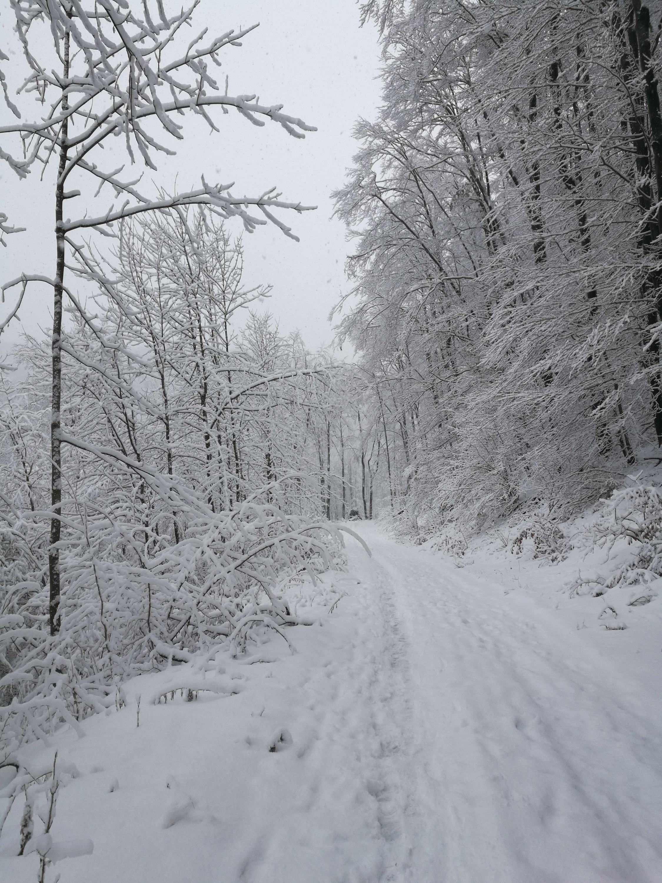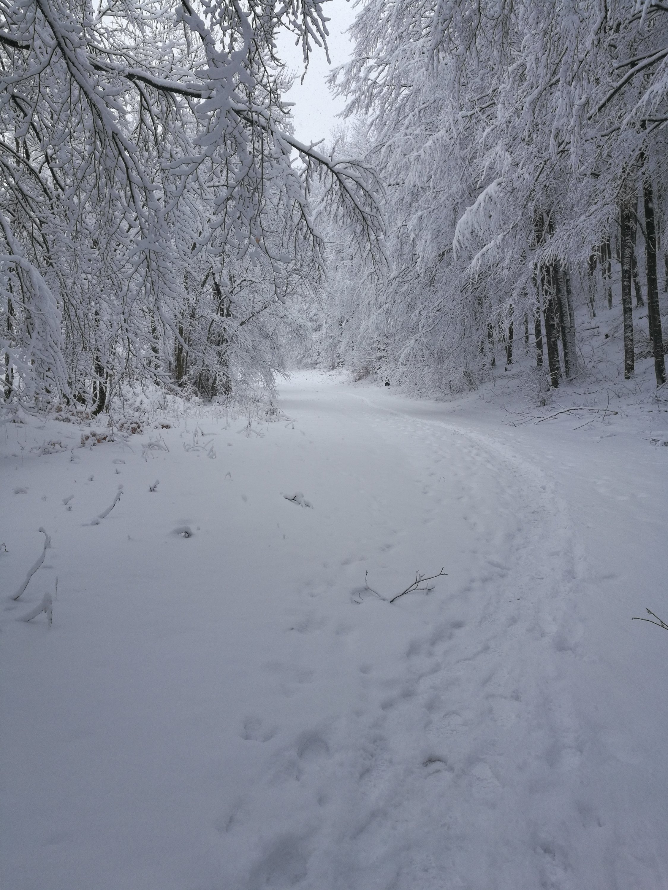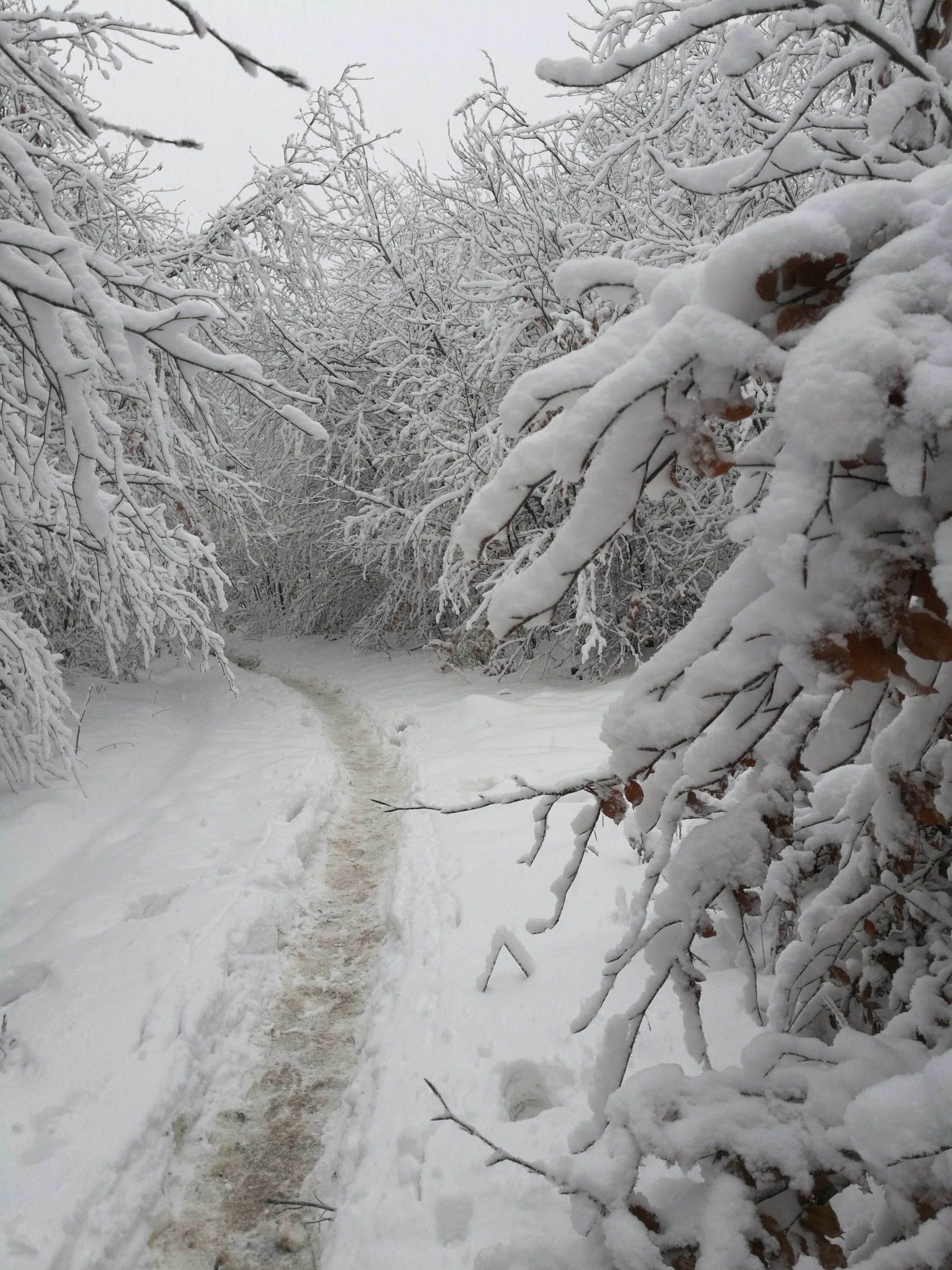 Volt olyan rész, ahol mintha alagútban mentem volna, mert a hótól elnehezült ágak behajoltak az út felé. Sokszor kétrét görnyedve haladtam lépéseken keresztül. Nem bántam. Így volt változatos a kirándulás.