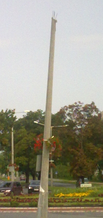 A Kard és kasza második kötetéért sétáltam el a munkahelyem melletti boltba (mert az első könyv befejeztével jöttem rá, hogy van egy másik rész is), akkor láttam meg az oszlopot. A lámpa és az azt tartó letört rész bókolt lefele, csak a kábelek tartották. Gondolom, a hajnalban felriasztó villám alkotta. Csak visszafelé jövet fotóztam, s akkor már csak a csonk volt meg: