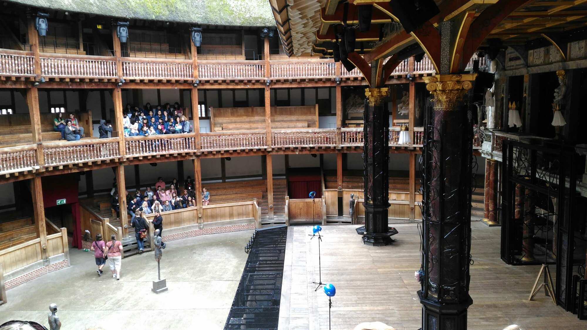 A hétvége első napjára a Temze partján található megnézni valókat terveztem be. Kezdtük a Globe Színházzal azon a szürke, borongós, kissé hűvös reggelen. Kb. egy félóra várakozás után elindult az első vezetett csoport, hogy megismerkedjünk a színház múltjával, jelenével, történetével. Nagy megnyugvásomra, az épületet akkor kezdték építeni, amikor anno 1993-ban én is megérkeztem Angliában, így legfeljebb az építkezés munkálatait tudtam volna megfigyelni, ha arra járok olykor.